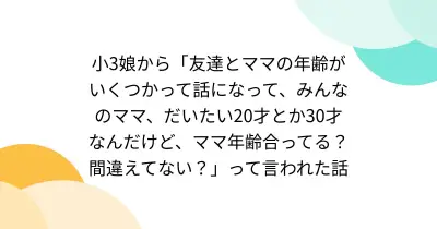 小3娘から「友達とママの年齢がいくつかって話になって、みんなのママ、だいたい20才とか30才なんだけど、ママ年齢合ってる?間違えてない?」って言われた話