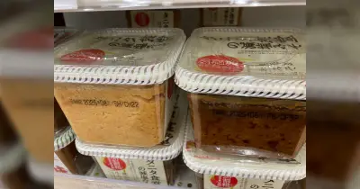 ホームセンターに売っていた味噌の色が全然違う...こんな色は初めて見た!賞味期限は2か月違いみたいだけどロット違いでこんなに色が違うもんなの...?