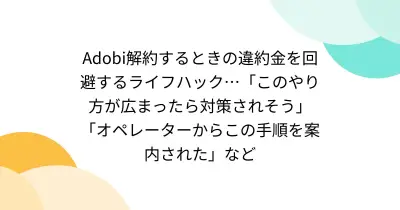 Adobi解約するときの違約金を回避するライフハック…「このやり方が広まったら対策されそう」「オペレーターからこの手順を案内された」など