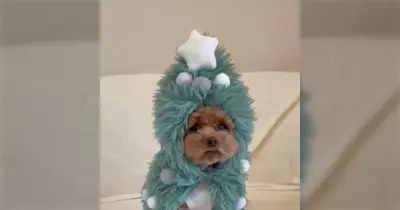 哀愁漂う"ツリーを着せられた犬さん"の画像が話題に→スリコの去年の商品だが、今年もいろんなお家で再活躍しているっぽい