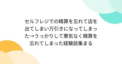 セルフレジでの精算を忘れて店を出てしまい万引きになってしまった→うっかりして悪気なく精算を忘れてしまった経験談集まる
