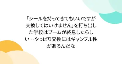 「シールを持ってきてもいいですが交換してはいけません」を打ち出した学校はブームが終息したらしい…やっぱり交換にはギャンブル性があるんだな