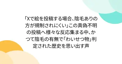 「Xで絵を投稿する場合、陰毛ありの方が規制されにくい」この真偽不明の投稿へ様々な反応集まる中、かつて陰毛の有無で「わいせつ物」判定された歴史を思い出す声