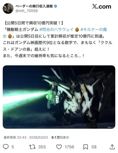 閃光のハサウェイ キルケーの魔女、興行収入がククルス・ドアンの島を突破!!!!!!