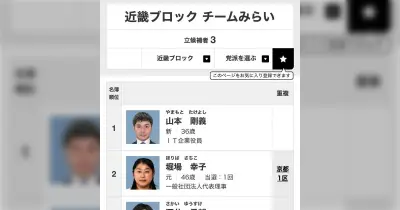 チームみらい、公認候補者が粉飾事件で倒産したオルツ社の営業責任者だったことが判明して候補が辞退したため、近畿圏の比例単独候補が不在に
