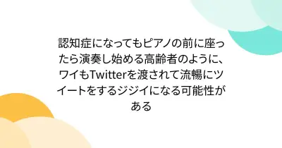 認知症になってもピアノの前に座ったら演奏し始める高齢者のように、ワイもTwitterを渡されて流暢にツイートをするジジイになる可能性がある