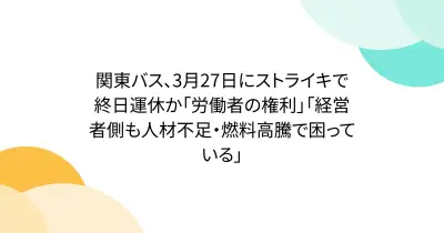 関東バス、3月27日にストライキで終日運休か「労働者の権利」「経営者側も人材不足・燃料高騰で困っている」