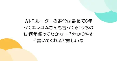 Wi-Fiルーターの寿命は最長で6年ってエレコムさんも言ってる!うちのは何年使ってたかな…?分かりやすく書いてくれると嬉しいな