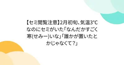 【セミ閲覧注意】2月初旬、気温3℃なのにセミがいた「なんだかすごく寒(せみー)いな」「誰かが置いたとかじゃなくて?」