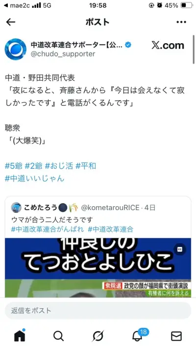 【中道連】安住淳が火に油、足組みクリームパン炎上に「中道だったら犬でも猫でも憎いのか、バカヤロー!」高市首相は勝機ありの判断で同選挙区に応援入り