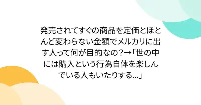 発売されてすぐの商品を定価とほとんど変わらない金額でメルカリに出す人って何が目的なの?→「世の中には購入という行為自体を楽しんでいる人もいたりする...」