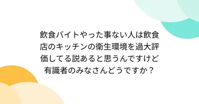 飲食バイトやった事ない人は飲食店のキッチンの衛生環境を過大評価してる説あると思うんですけど有識者のみなさんどうですか?