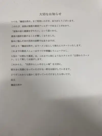 【悲報】蕎麦屋さん、店主の子供が蕎麦アレルギーと判明したため閉店へ