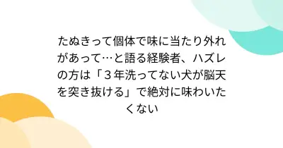 たぬきって個体で味に当たり外れがあって…と語る経験者、ハズレの方は「3年洗ってない犬が脳天を突き抜ける」で絶対に味わいたくない
