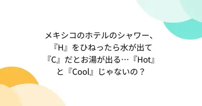 メキシコのホテルのシャワー、『H』をひねったら水が出て『C』だとお湯が出る…『Hot』と『Cool』じゃないの?