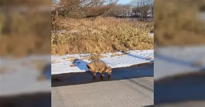 北海道の野生動物はエンカウントすると大抵逃げるんだけど、何故かエゾタヌキは傍らで雪解け水をのんびり賞味してる「可愛すぎる」「起き抜けのおじいちゃんみたい」