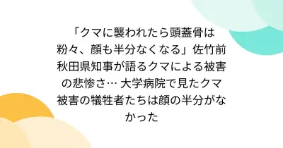 「クマに襲われたら頭蓋骨は粉々、顔も半分なくなる」佐竹前秋田県知事が語るクマによる被害の悲惨さ… 大学病院で見たクマ被害の犠牲者たちは顔の半分がなかった
