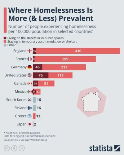 海外「これが主要国のホームレスの数、日本は10万人中2人しかいない」