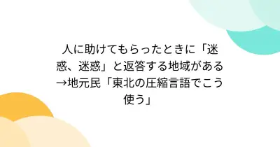 人に助けてもらったときに「迷惑、迷惑」と返答する地域がある→地元民「東北の圧縮言語でこう使う」