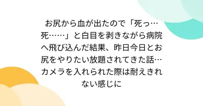 お尻から血が出たので「死っ…死……」と白目を剥きながら病院へ飛び込んだ結果、昨日今日とお尻をやりたい放題されてきた話… カメラを入れられた際は耐えきれない感じに