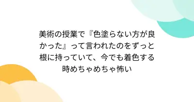 美術の授業で『色塗らない方が良かった』って言われたのをずっと根に持っていて、今でも着色する時めちゃめちゃ怖い