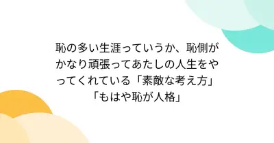 恥の多い生涯っていうか、恥側がかなり頑張ってあたしの人生をやってくれている「素敵な考え方」「もはや恥が人格」
