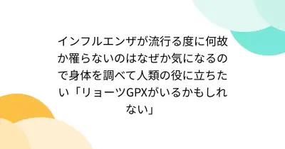 インフルエンザが流行る度に何故か罹らないのはなぜか気になるので身体を調べて人類の役に立ちたい「リョーツGPXがいるかもしれない」