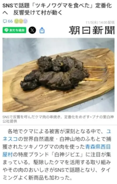【画像】ツキノワグマの串焼きが美味そうだと話題にwwwwww