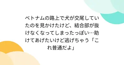 ベトナムの路上で犬が交尾していたのを見かけたけど、結合部が抜けなくなってしまったっぽい…助けてあげたいけど逃げちゃう「これ普通だよ」