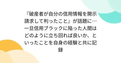 『破産者が自分の信用情報を開示請求して判ったこと』が話題に… 一旦信用ブラックに陥った人間はどのように立ち回れば良いか、といったことを自身の経験と共に記録