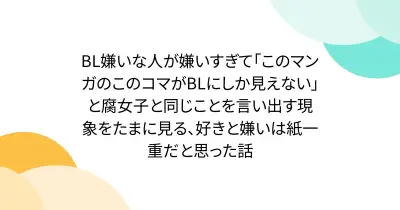 BL嫌いな人が嫌いすぎて「このマンガのこのコマがBLにしか見えない」と腐女子と同じことを言い出す現象をたまに見る、好きと嫌いは紙一重だと思った話