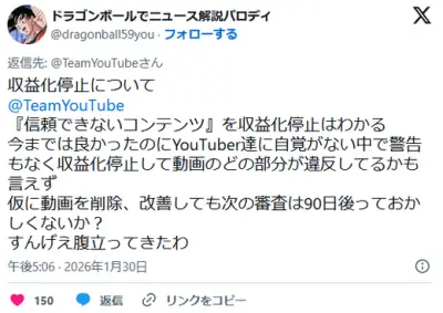 AIを利用した「ドラゴンボールでニュース解説パロディー」YouTube、収益化停止で激怒り😡