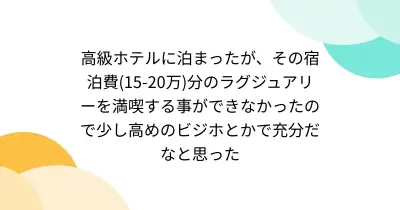高級ホテルに泊まったが、その宿泊費(15-20万)分のラグジュアリーを満喫する事ができなかったので少し高めのビジホとかで充分だなと思った