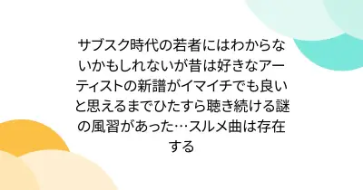 サブスク時代の若者にはわからないかもしれないが昔は好きなアーティストの新譜がイマイチでも良いと思えるまでひたすら聴き続ける謎の風習があった…スルメ曲は存在する