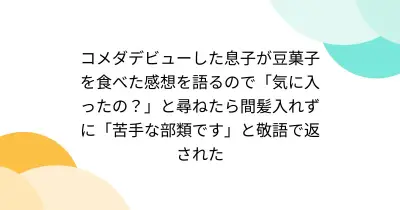 コメダデビューした息子が豆菓子を食べた感想を語るので「気に入ったの?」と尋ねたら間髪入れずに「苦手な部類です」と敬語で返された