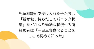 児童相談所で受け入れた子たちは「親が包丁持ちだしてパニック状態」などかなり過酷な状況…入所経験者は「一日三食食べることをここで初めて知った」