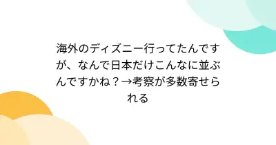 海外のディズニー行ってたんですが、なんで日本だけこんなに並ぶんですかね?→考察が多数寄せられる