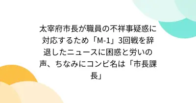 太宰府市長が職員の不祥事疑惑に対応するため「M-1」3回戦を辞退したニュースに困惑と労いの声、ちなみにコンビ名は「市長課長」