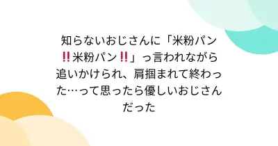 知らないおじさんに「米粉パン‼️米粉パン‼️」っ言われながら追いかけられ、肩掴まれて終わった…って思ったら優しいおじさんだった