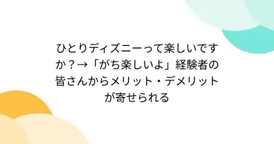 ひとりディズニーって楽しいですか?→「がち楽しいよ」経験者の皆さんからメリット・デメリットが寄せられる