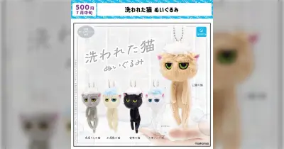 洗われた猫のぬいぐるみカプセルトイのお知らせ→「先週末お風呂に入れられたうちの猫」がそっくりすぎる