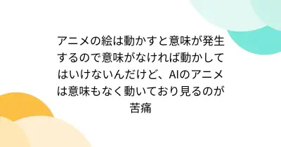 アニメの絵は動かすと意味が発生するので意味がなければ動かしてはいけないんだけど、AIのアニメは意味もなく動いており見るのが苦痛