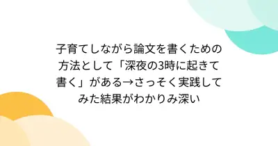 子育てしながら論文を書くための方法として「深夜の3時に起きて書く」がある→さっそく実践してみた結果がわかりみ深い