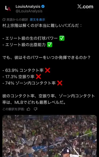 【悲報】MLB評論家さん 村上宗隆のデータを見て不安になってしまう