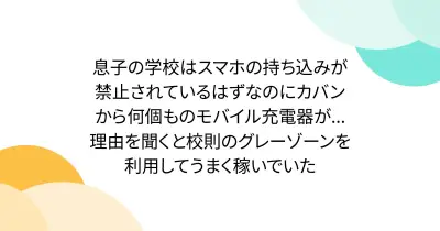 息子の学校はスマホの持ち込みが禁止されているはずなのにカバンから何個ものモバイル充電器が...理由を聞くと校則のグレーゾーンを利用してうまく稼いでいた