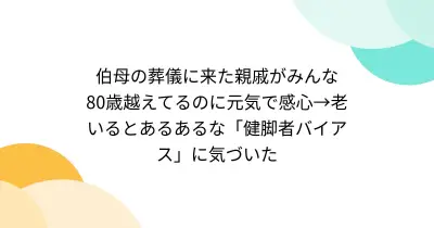 伯母の葬儀に来た親戚がみんな80歳越えてるのに元気で感心→老いるとあるあるな「健脚者バイアス」に気づいた