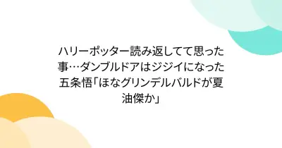 ハリーポッター読み返してて思った事…ダンブルドアはジジイになった五条悟「ほなグリンデルバルドが夏油傑か」