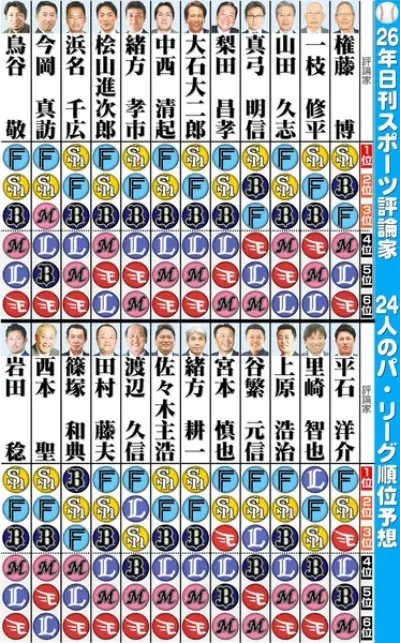 解説者の2026パリーグ順位予想wwwww