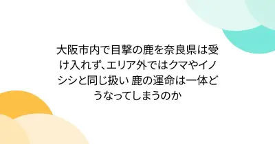 大阪市内で目撃の鹿を奈良県は受け入れず、エリア外ではクマやイノシシと同じ扱い 鹿の運命は一体どうなってしまうのか