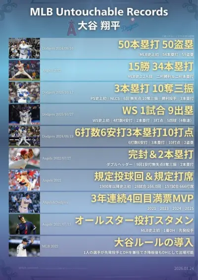 【画像】大谷が達成したアンタッチャブルレコード一覧www